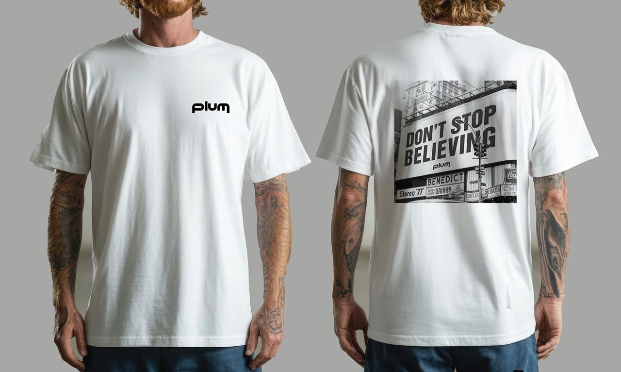 Introducing our PLUM “Don’t Stop Believing” T-Shirt, where style meets iconic branding for a look that’s both timeless and trendy. Crafted from premium quality cotton, this t-shirt offers unbeatable comfort and durability, making it a wardrobe staple for everyday wear.